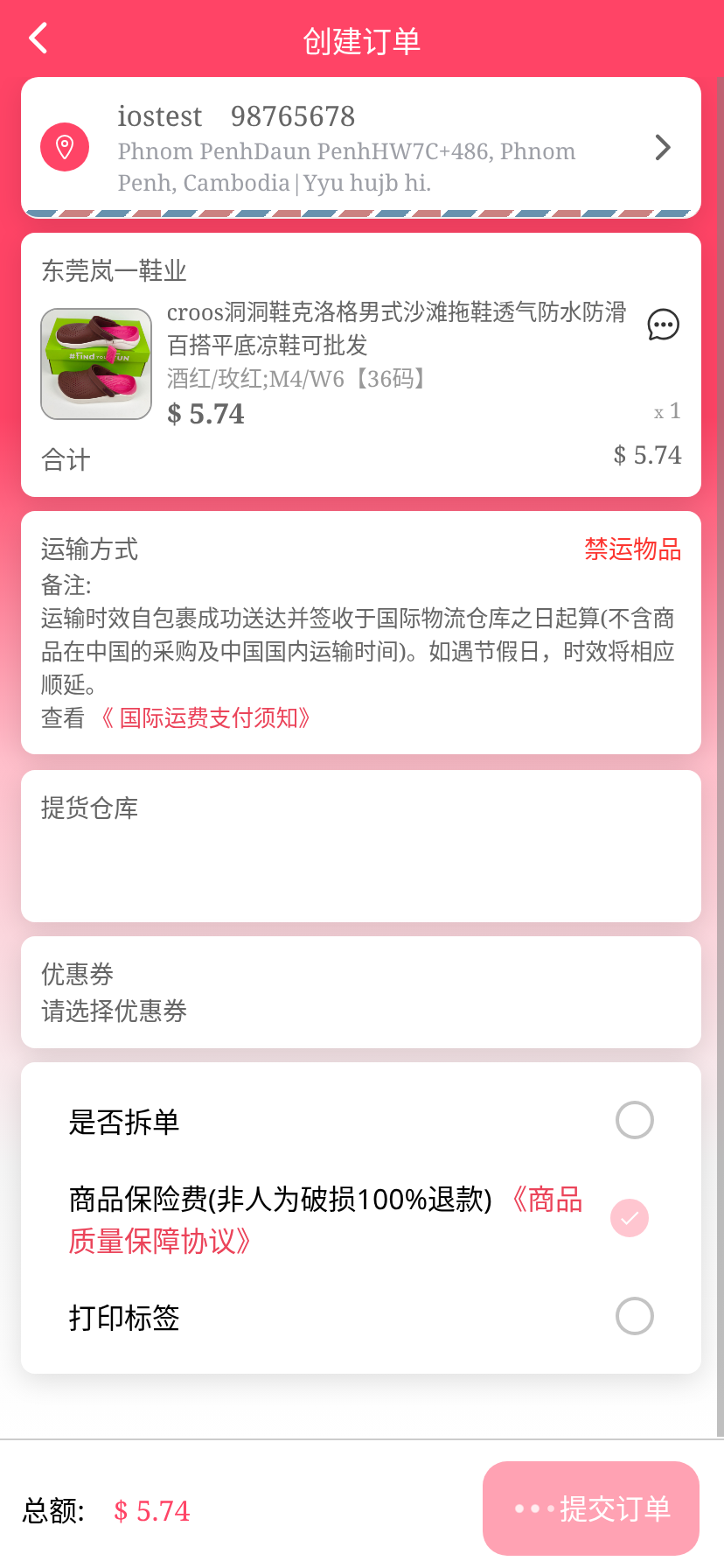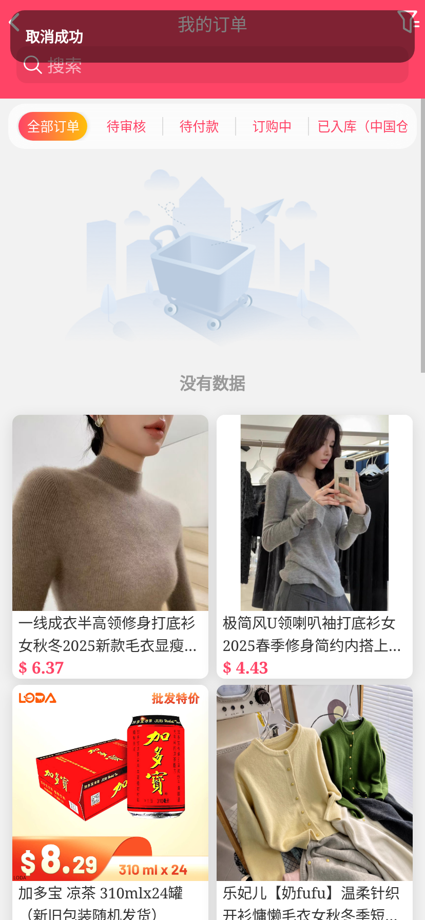 移动端代购搜索添加商品下单取消