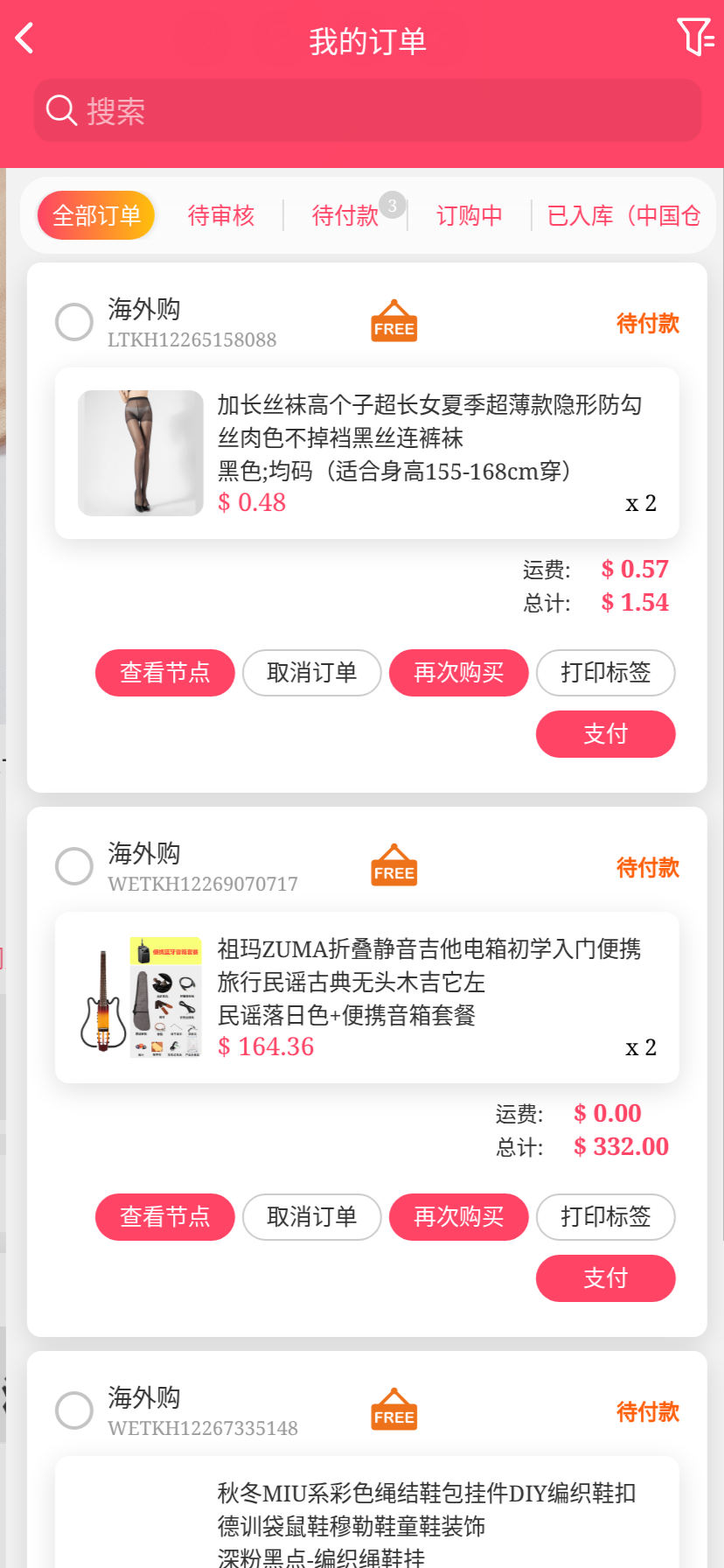 移动端代购搜索添加商品下单取消