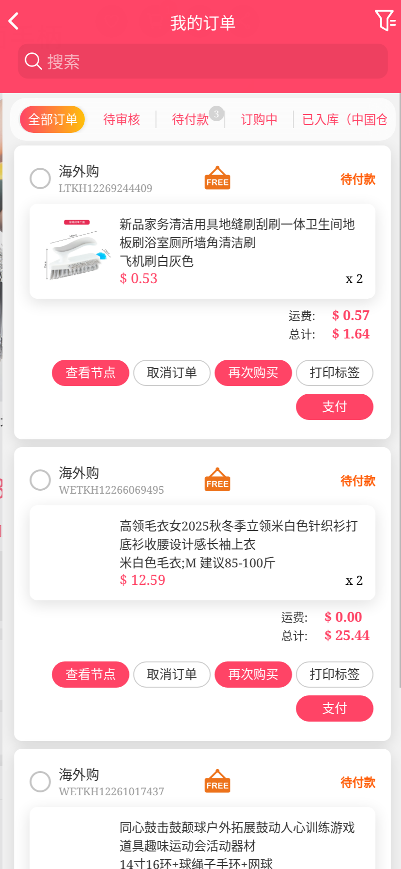 移动端代购搜索添加商品下单取消