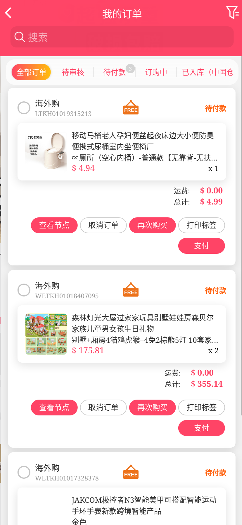移动端代购搜索添加商品下单取消