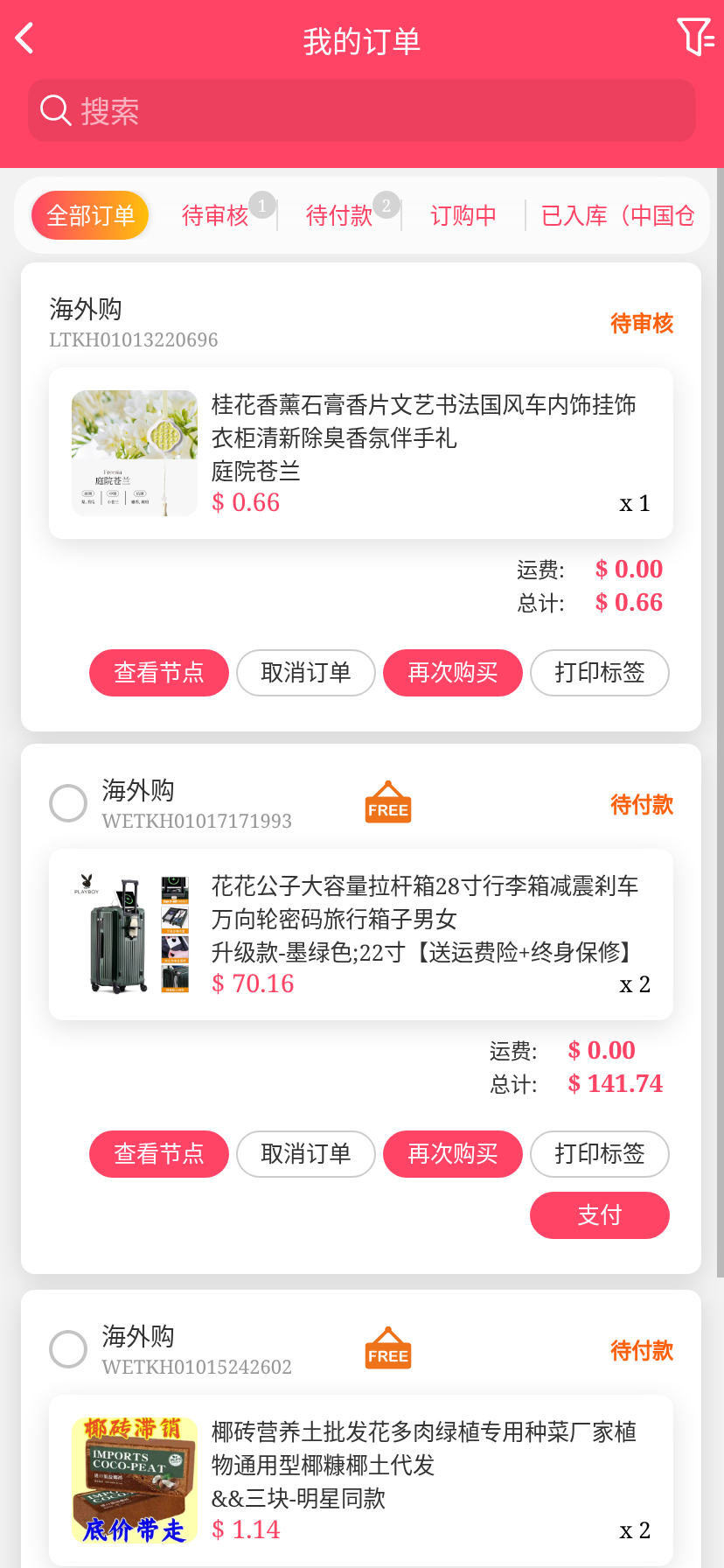 移动端代购搜索添加商品下单取消
