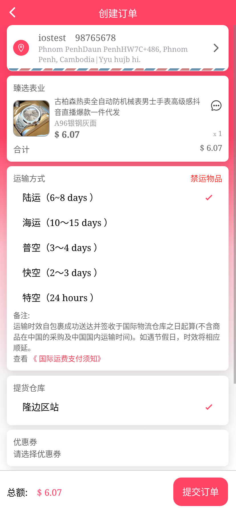 移动端代购搜索添加商品下单取消