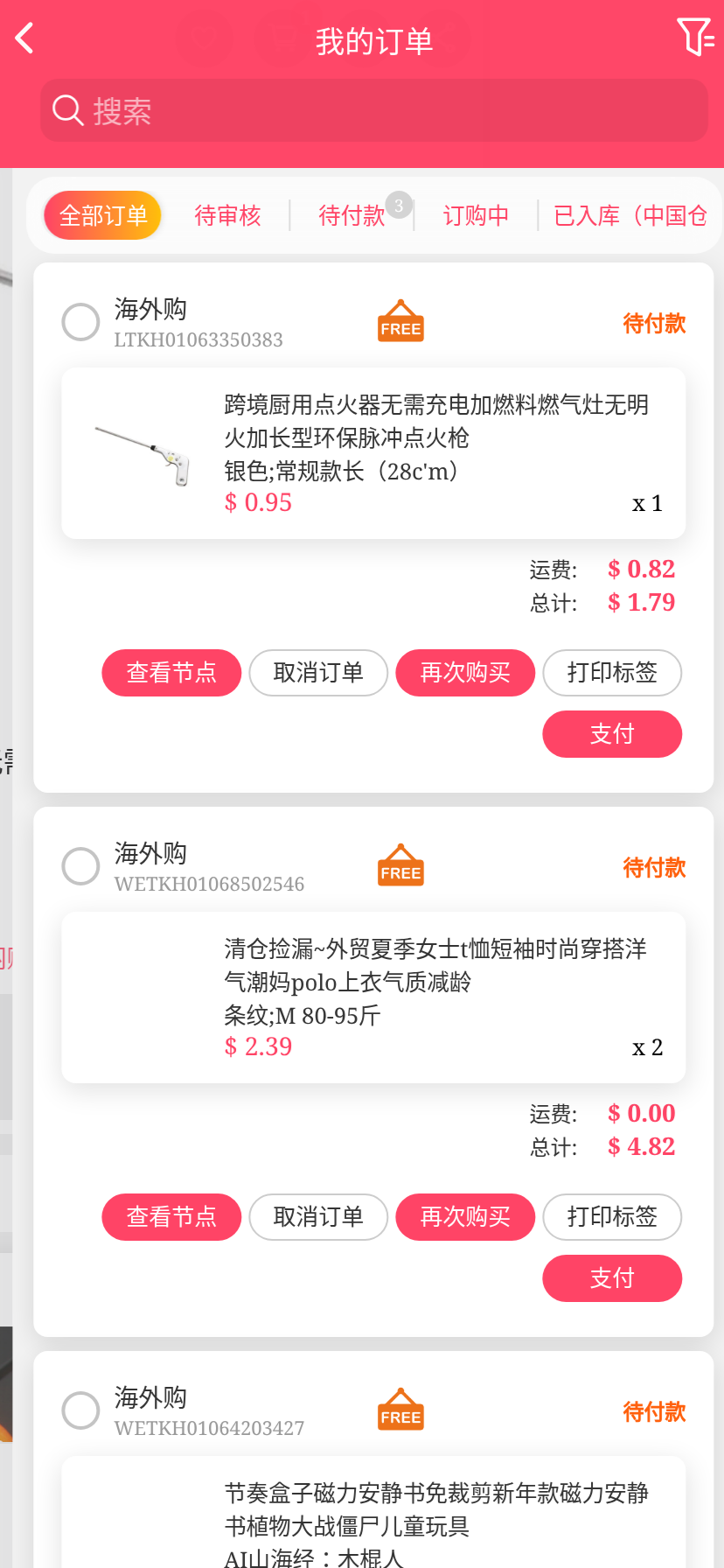 移动端代购搜索添加商品下单取消