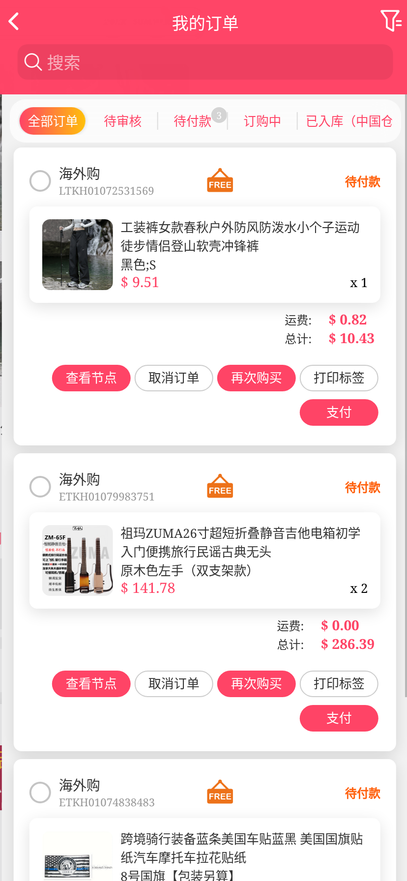 移动端代购搜索添加商品下单取消