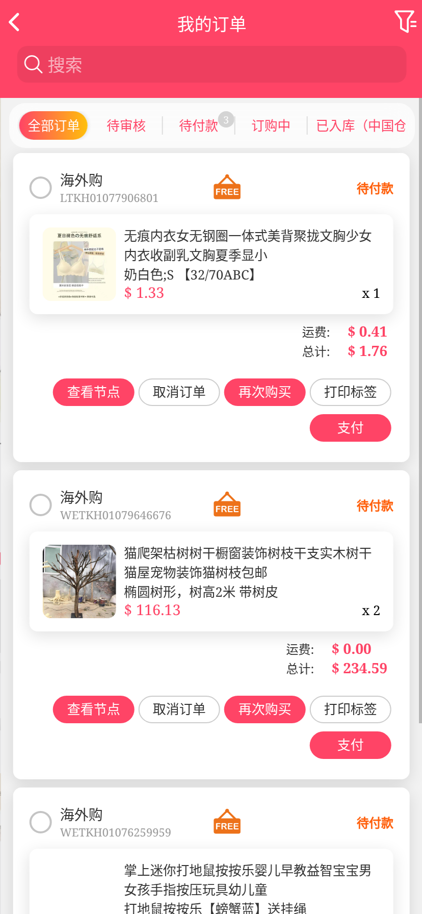移动端代购搜索添加商品下单取消