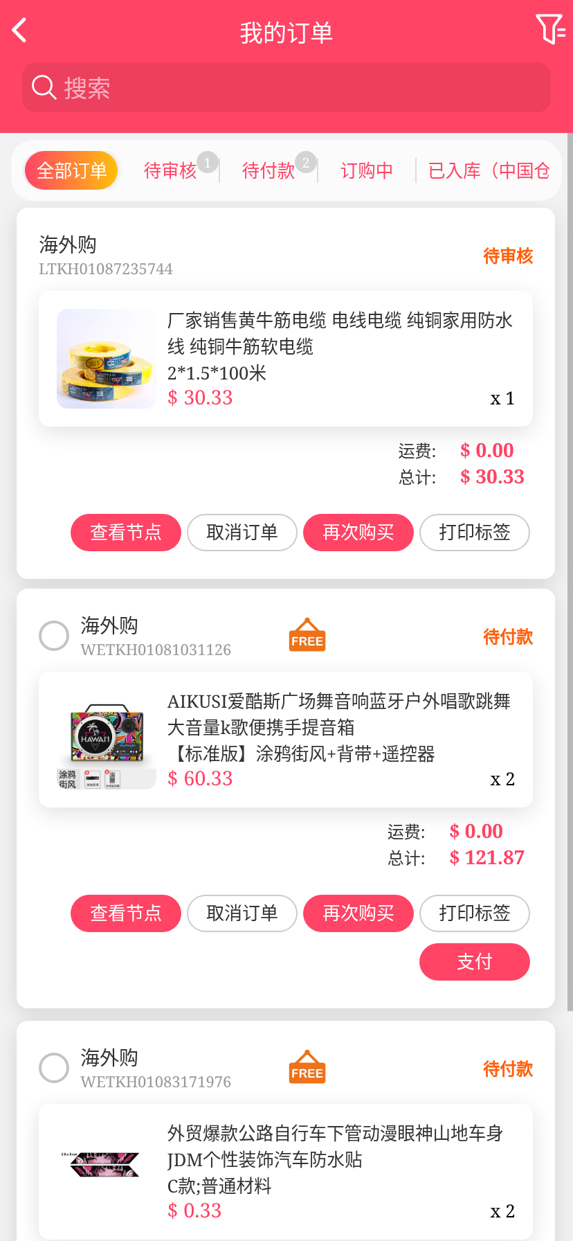 1 othersStatus Timestamp TestName Warning 21:29:39 移动端代购搜索添加商品下单取消