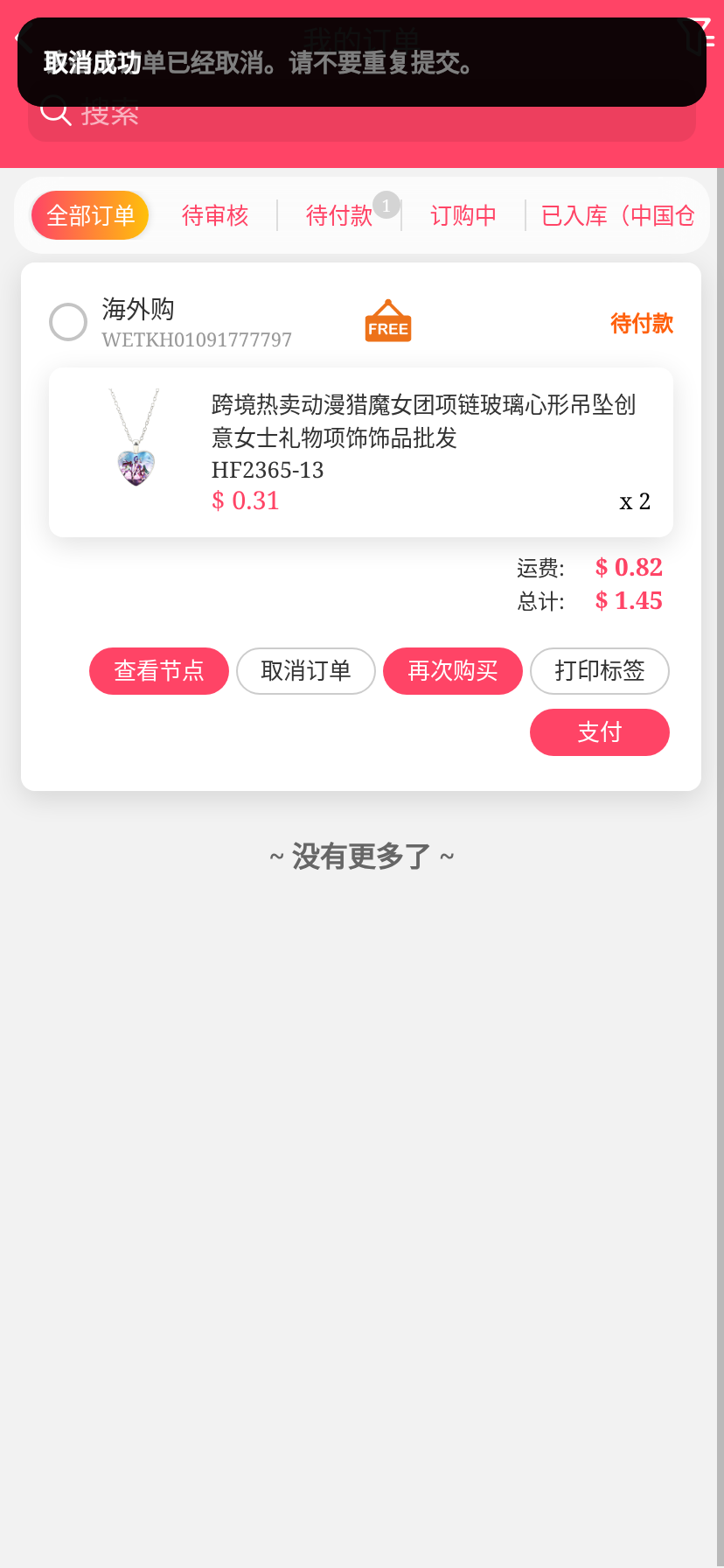 移动端代购搜索添加商品下单取消