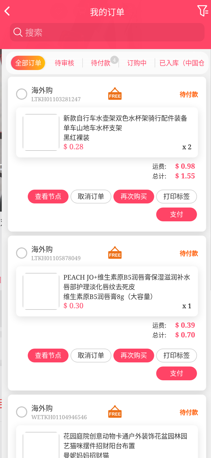 1 othersStatus Timestamp TestName Warning 08:07:54 移动端代购搜索添加商品下单取消
