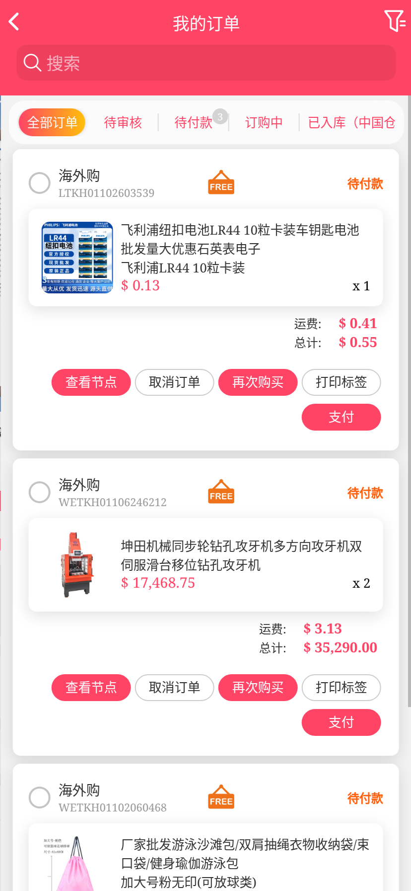 移动端代购搜索添加商品下单取消