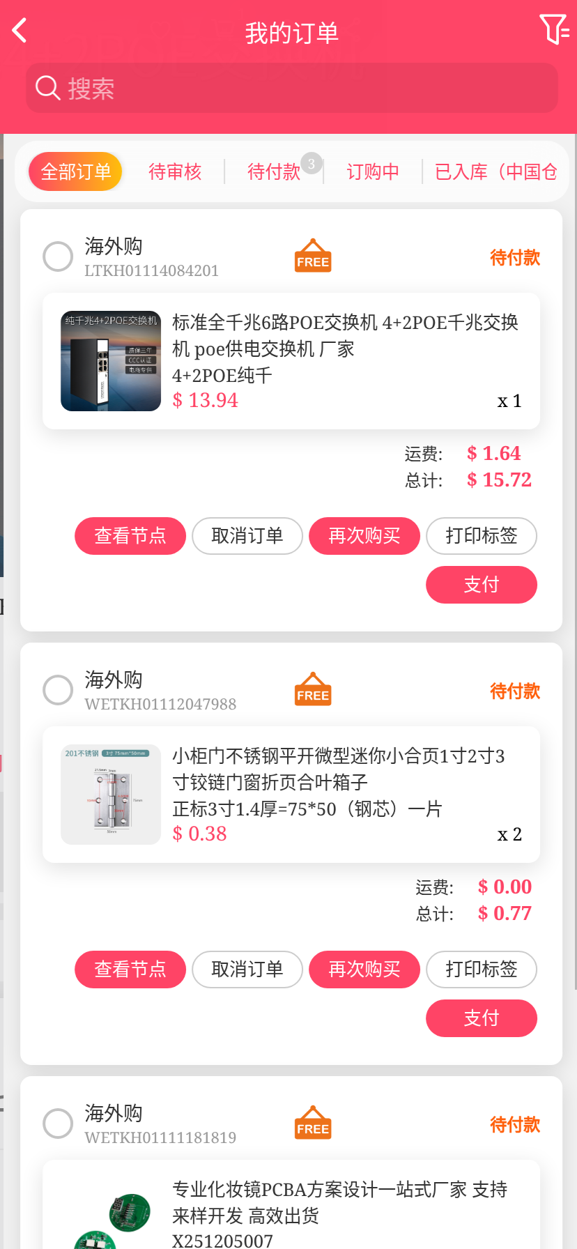 移动端代购搜索添加商品下单取消