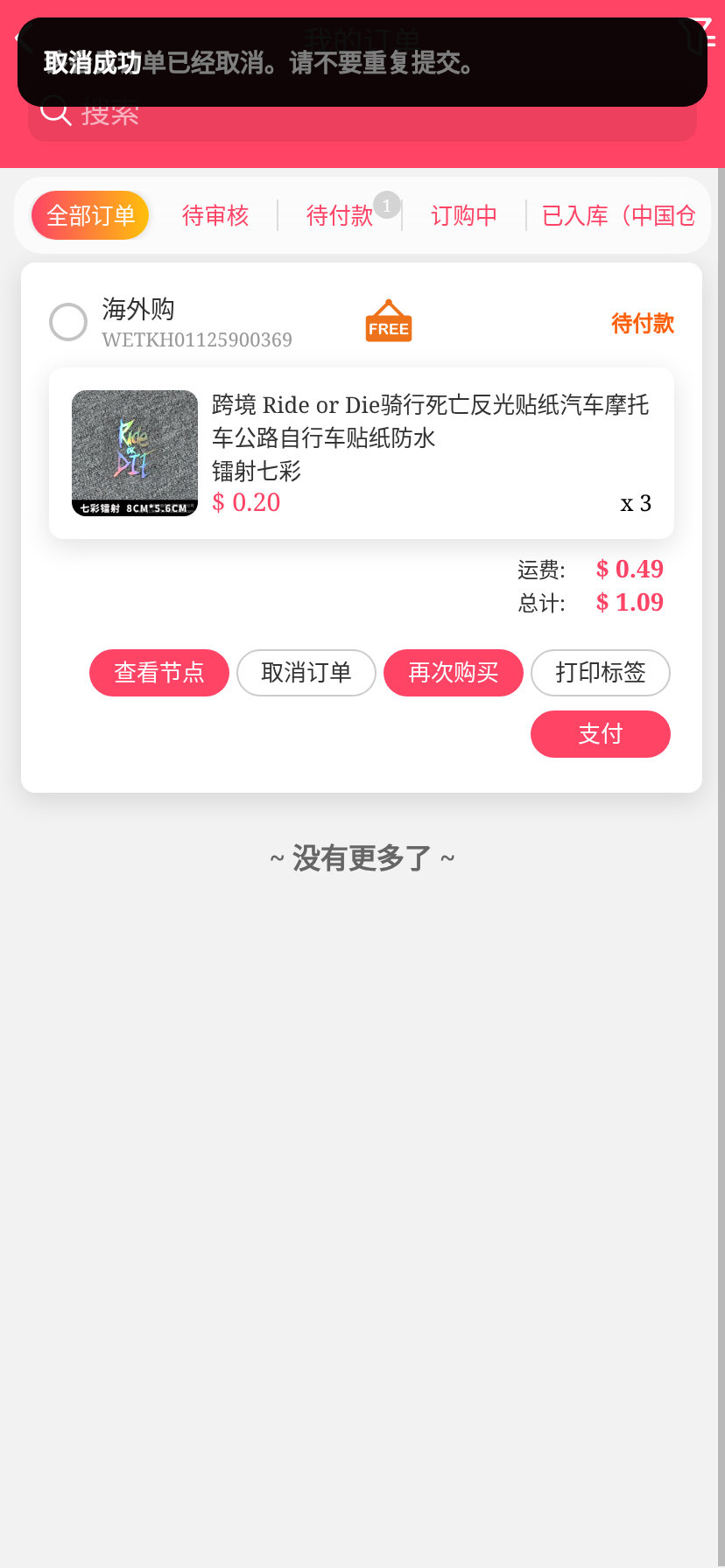 移动端代购搜索添加商品下单取消