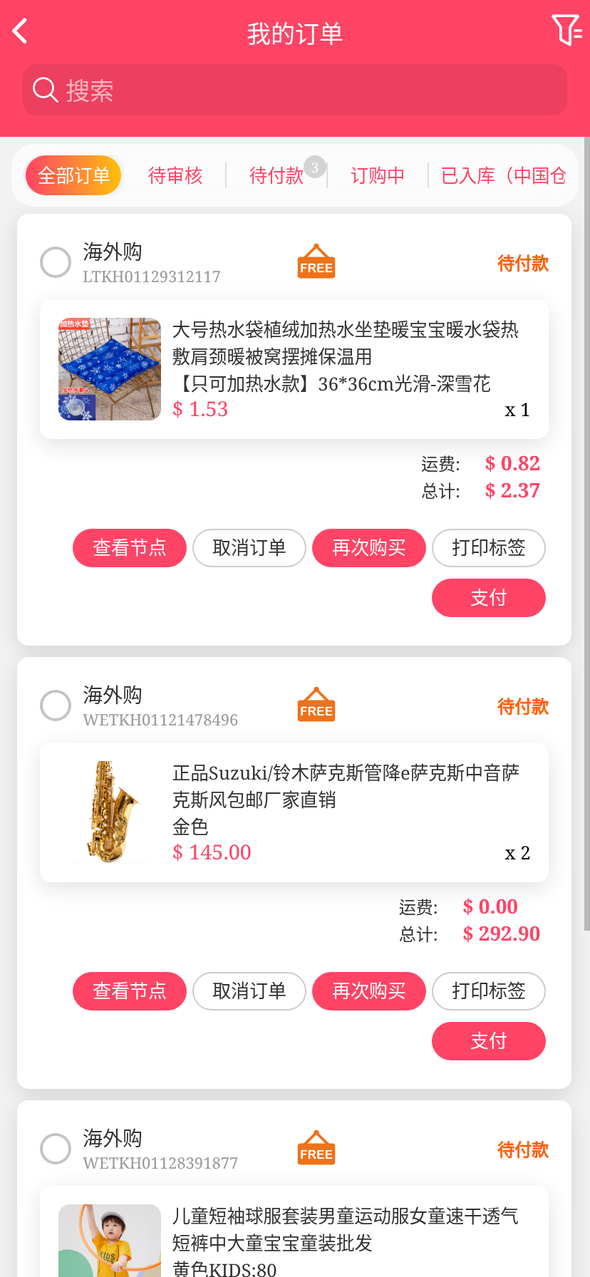 移动端代购搜索添加商品下单取消