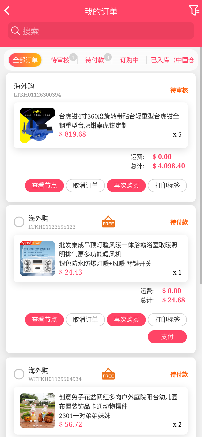 移动端代购搜索添加商品下单取消