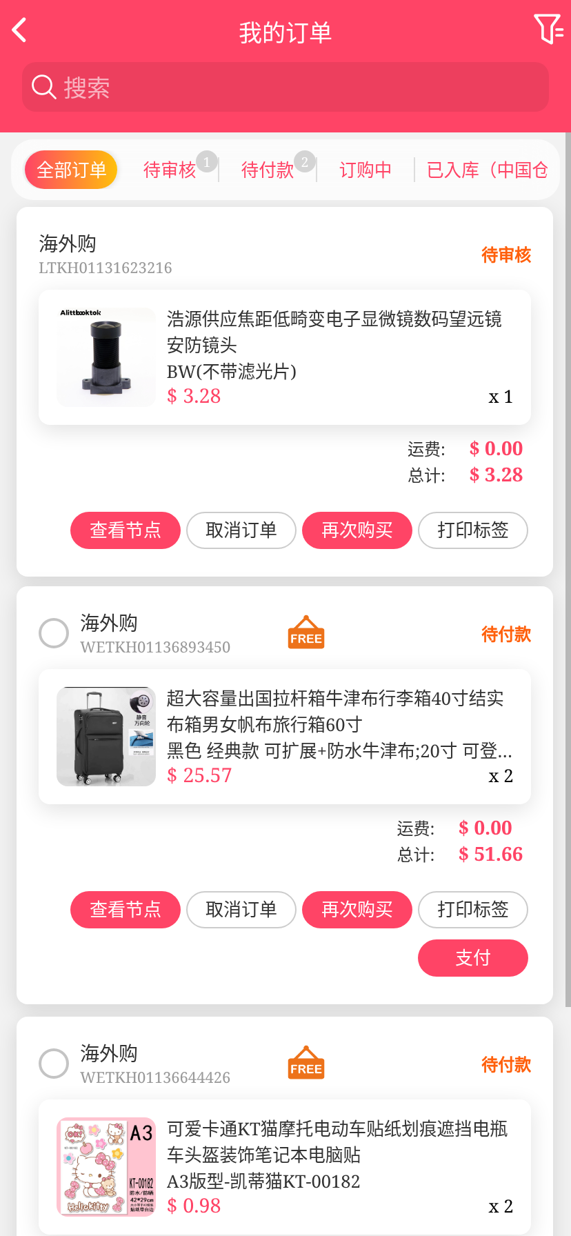 移动端代购搜索添加商品下单取消