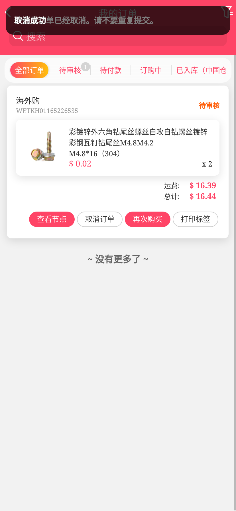 移动端代购搜索添加商品下单取消