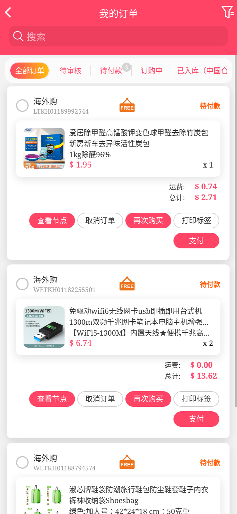 移动端代购搜索添加商品下单取消