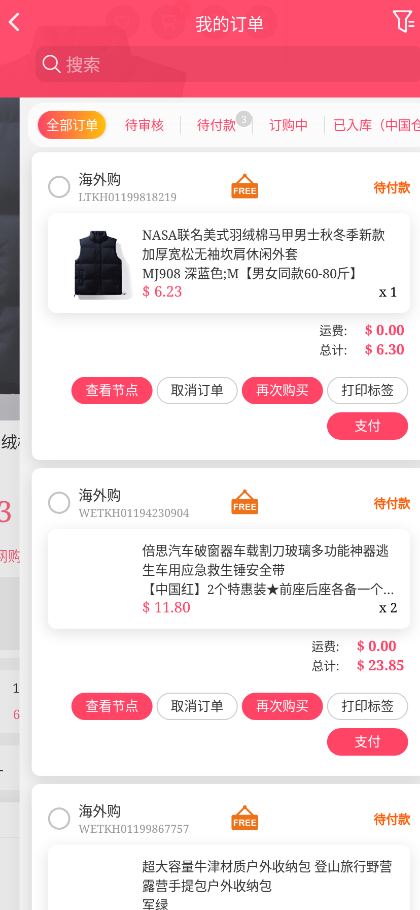 移动端代购搜索添加商品下单取消