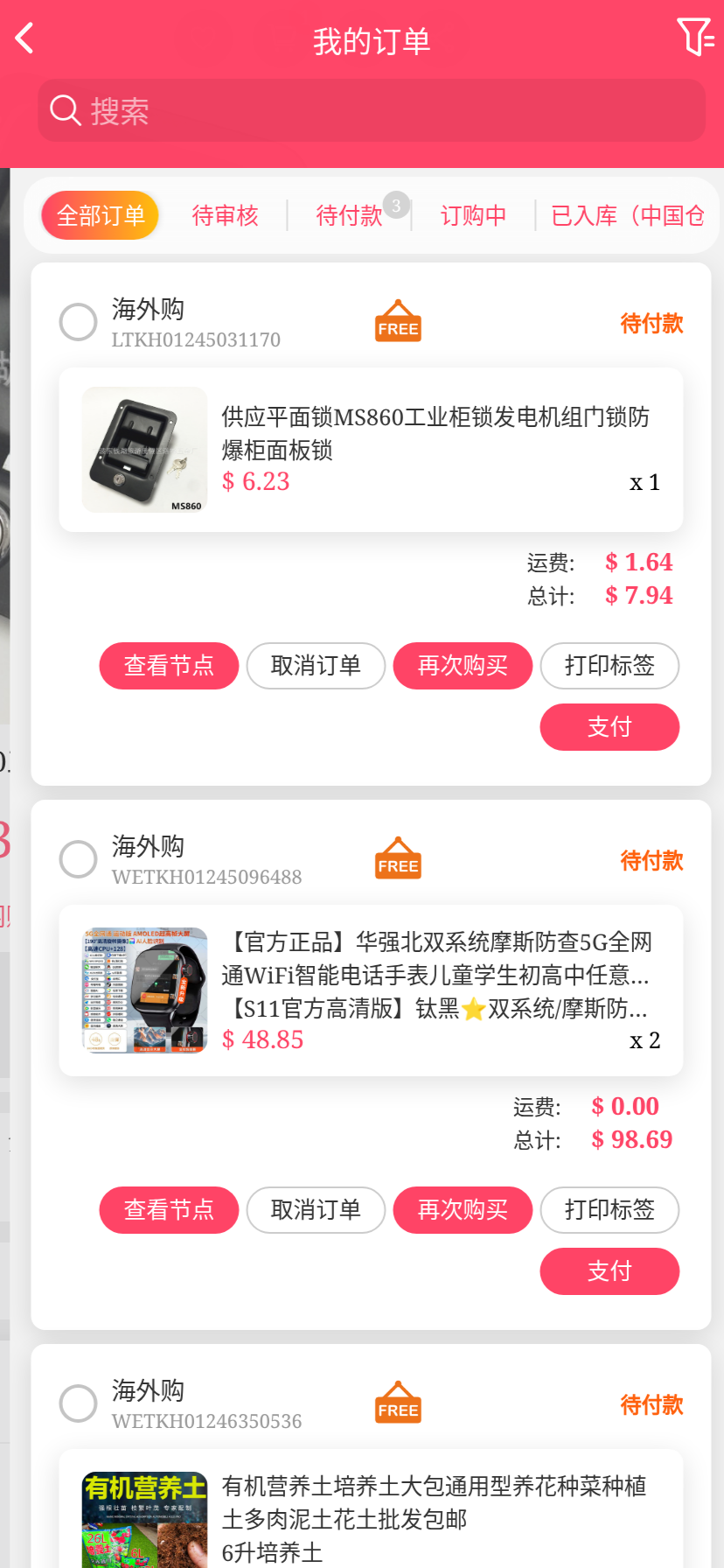 移动端代购搜索添加商品下单取消