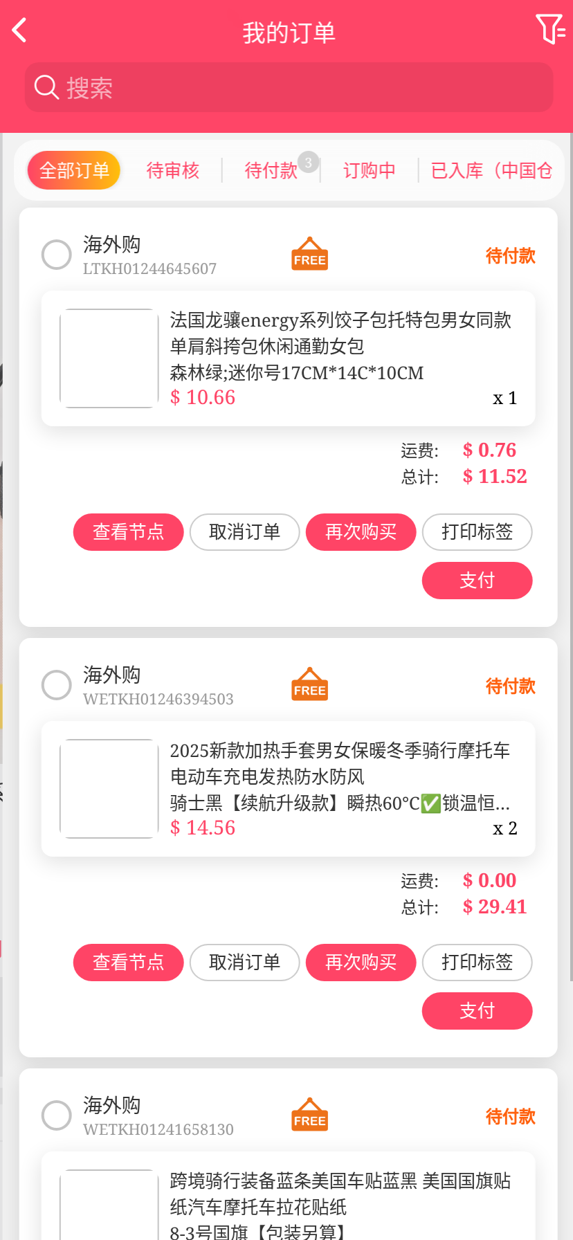 移动端代购搜索添加商品下单取消