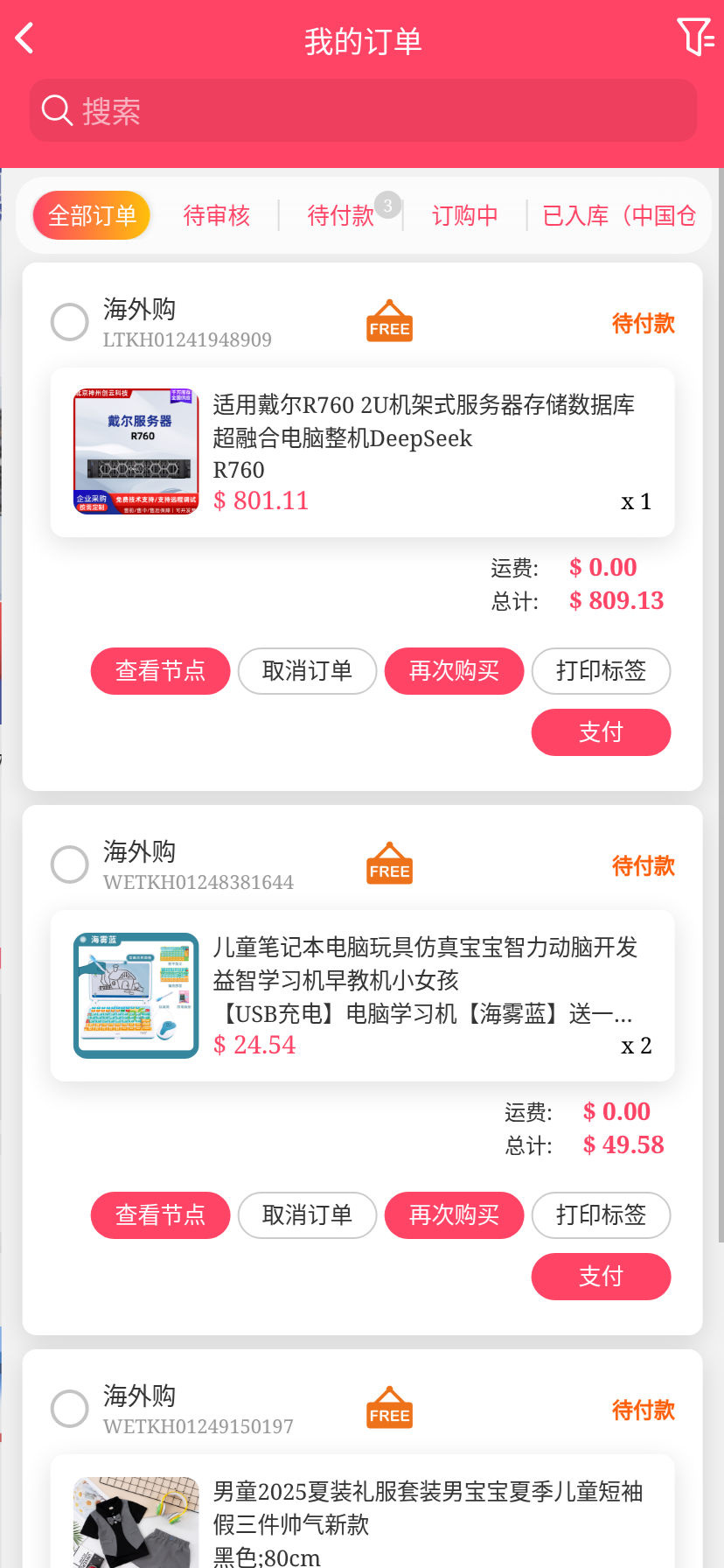 移动端代购搜索添加商品下单取消