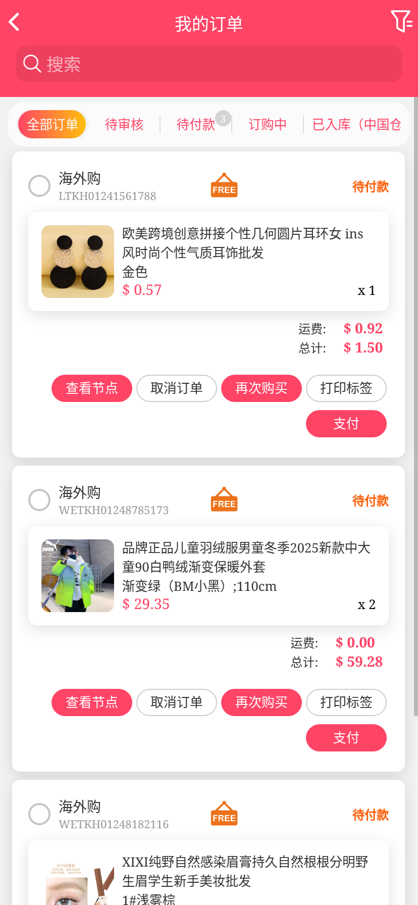 移动端代购搜索添加商品下单取消