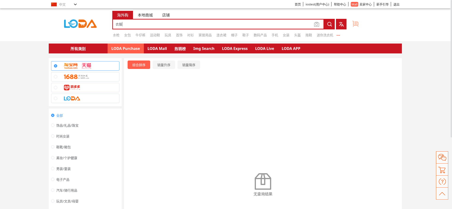 PC端测试热销榜显示。