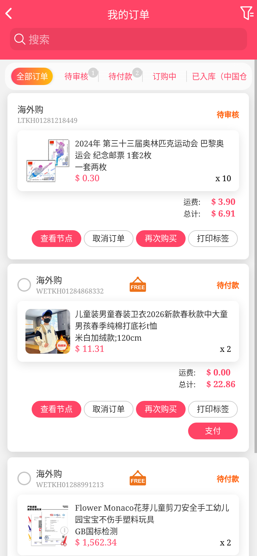 移动端代购搜索添加商品下单取消