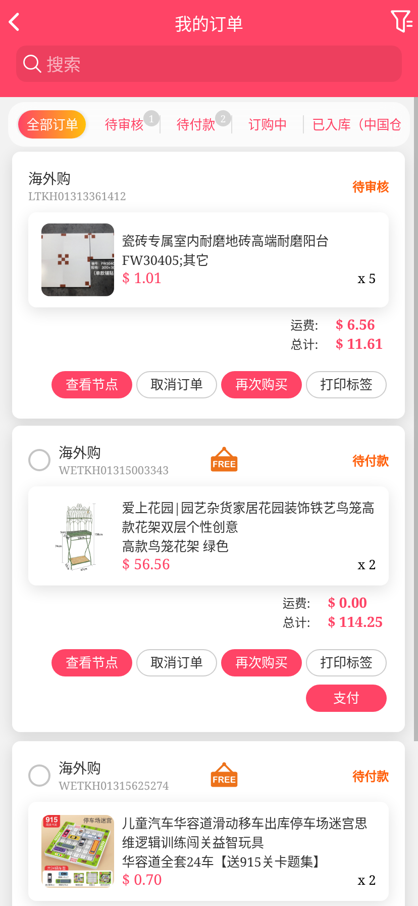 移动端代购搜索添加商品下单取消
