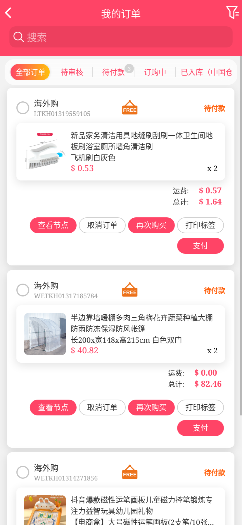 移动端代购搜索添加商品下单取消